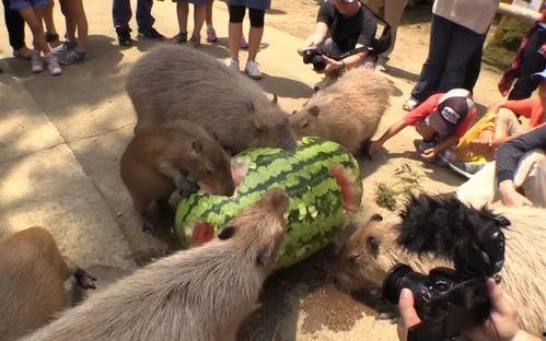 水豚,又称“河马猪”,是南美洲的一种大型啮齿类动物。别看它们长得憨态可掬,其实它们可是吃瓜高手哦!水豚的食性非常广泛,除了吃瓜,它们还喜欢吃根、茎、叶、果实等植物性食物。而在众多水果中,水豚对瓜类情有独钟,尤其是西瓜。